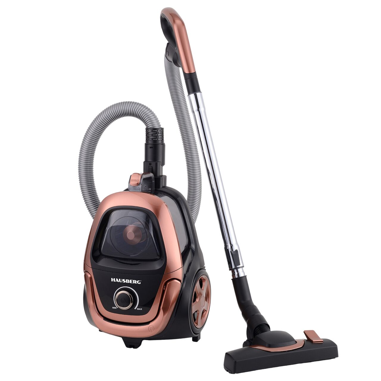 Aspirator fara sac HAUSBERG HB-2823AU, 1400-1800W, multiciclon, aspirare uscata, capacitate 2.5 litri, filtru HEPA, control viteza, derulator automat cablu, Auriu-Negru
