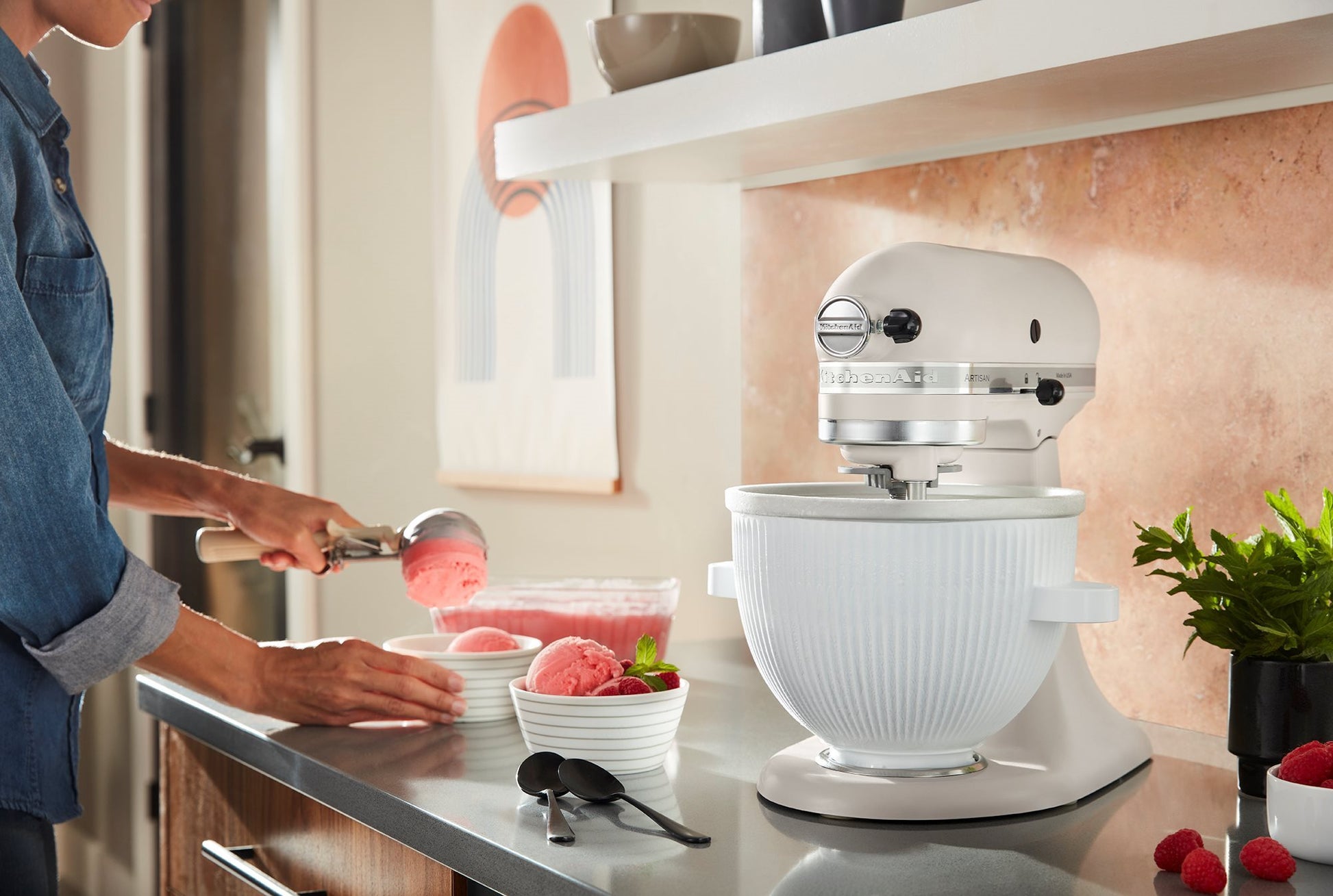 Va intrebati cum puteti prepara acasa inghetata delicioasa, consistenta si cremoasa? Puteti deveni instant un expert cu accesoriul marca KitchenAid. Acesta este compatibil cu majoritatea mixerelor planetare KitchenAid inlocuind bolul de mixare traditional.