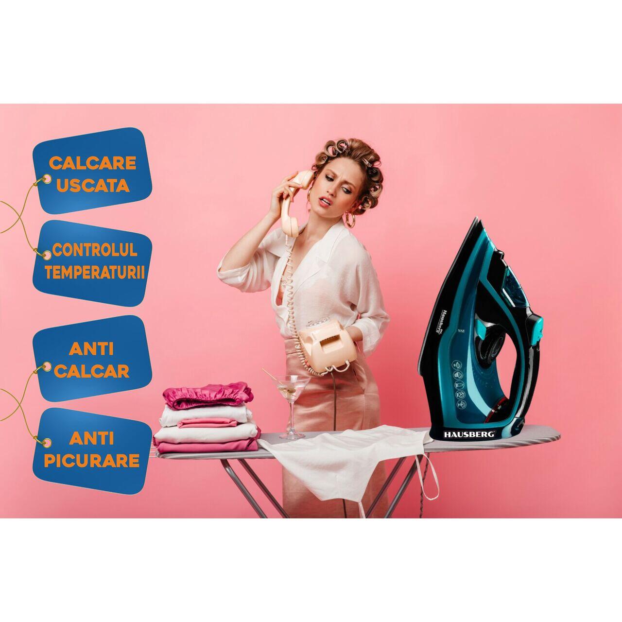 Fier de Calcat Hausberg HB-7840VR, Ceramic, autocuratare, anticalcar, 300ml, 2400-2800W, Negru/Verde