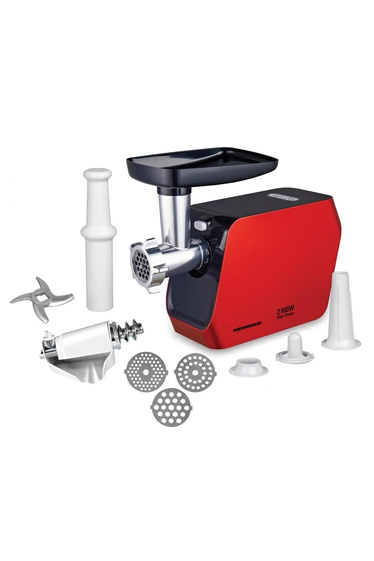 Masina de tocat HEINNER MG-2100RD, 2100W, 1.8 kg/min, accesoriu rosii, accesorii carnati, cutit din otel inoxidabil, 3 site de taiere, rosii