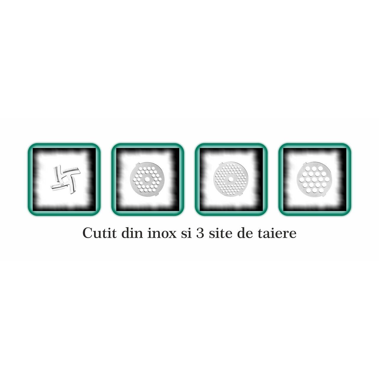 ?? 3 site din inox pentru tocare: 3 mm, 5 mm si 7 mm.