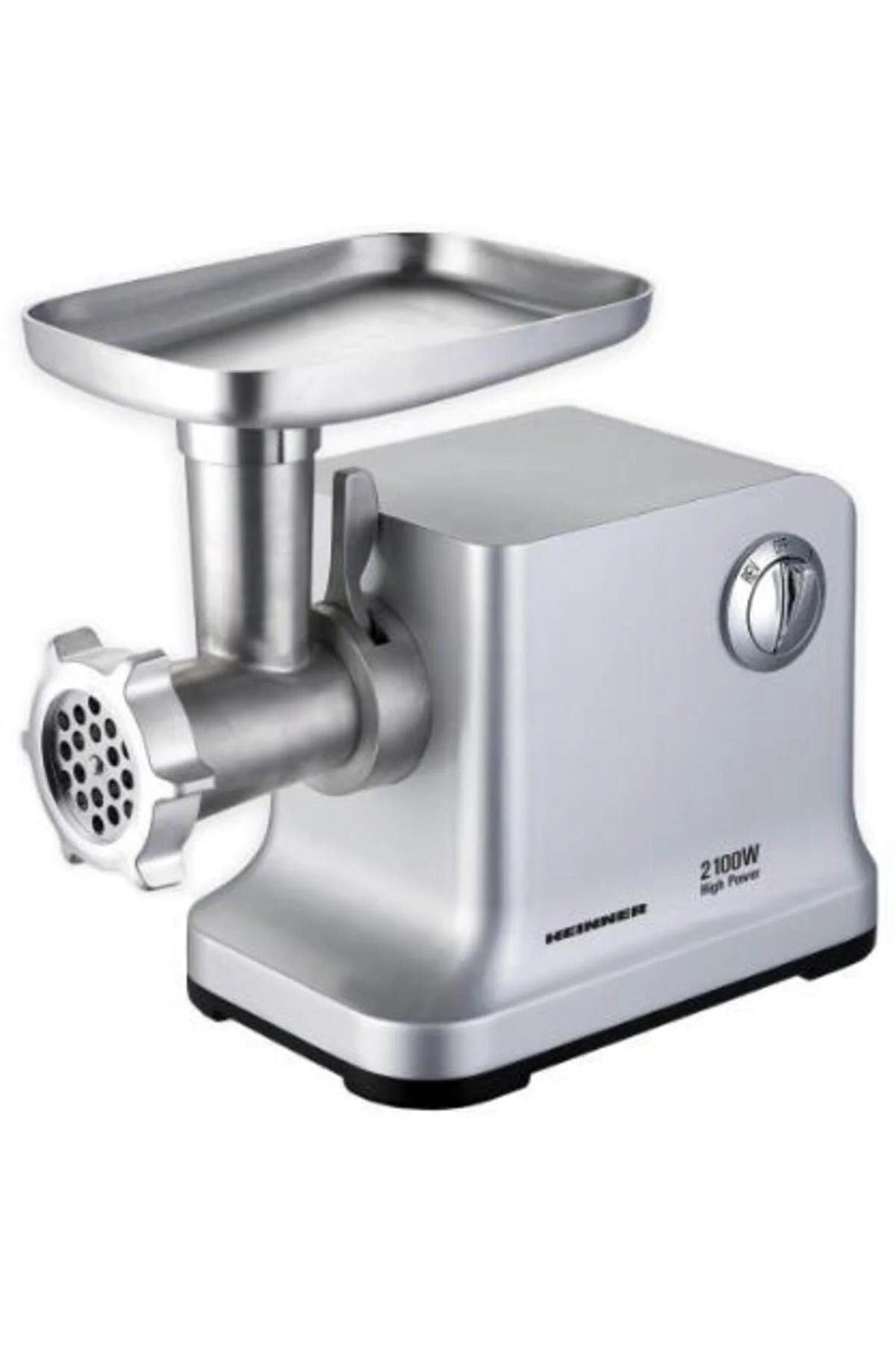 Masina de tocat HEINNER MG-2100SS, 2100W, Accesoriu rosii, Accesoriu carnati, Cutit si sita din otel inoxidabil, Argintiu Putere maxima de 2100 W Cand vine vorba de tocarea carnii pentru carnati, chiftele, kibbe, musaca sau prepararea sucului proaspat de rosii, masina de tocat HEINNER este ajutorul tau de nadejde.; Are un motor puternic de 2100W, care asigura un ritm constant de tocare, fara a se bloca.; Toaca rapid si usor, prin simpla apasare a unui buton.; Accesoriu rosii Pregateste cel mai bun si mai proaspat sos pentru paste sau pizza sau savureaza o delicioasa supa de rosii.; Folosind accesoriul special pentru rosii, economisesti timp si energie si uiti de metoda clasica de stoarcere a rosiilor - razatoarea.; Accesoriu carnati si kibbe Masina de tocat vine cu o gama de accesorii utile, astfel incat sa te poti bucura de o experienta completa in bucatarie, folosind un singur aparat.; Tocati peste, carne pentru musaca, parmezan, lasagna, chiftele sau preparati kibbeh si carnati deliciosi in propria bucatarie.; Cutit din aluminiu turnat Masina de tocat HEINNER MG-2100SS este echipata cu un cutit din otel inoxidabil turnat, conceput pentru a prelungi durata de viata si performanta masinii de tocat.; Astfel, tocarea carnii mai dure si a legumelor tari nu va mai fi o problema.; 2 site de taiere din otel inoxidabil Cele 2 site de taiere din otel inoxidabil va ajuta sa reglati modul de tocare, mai fin sau mai grosier.;