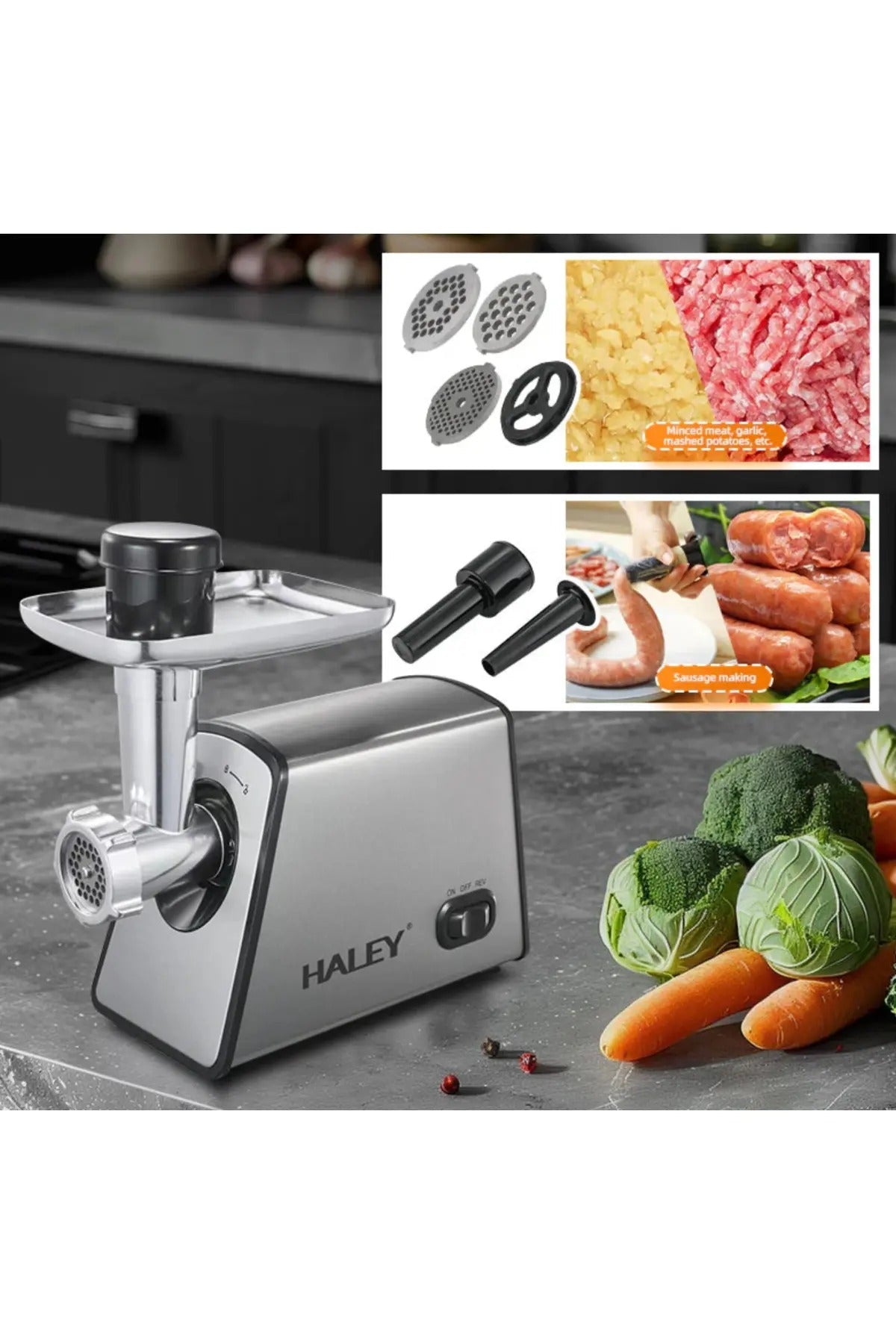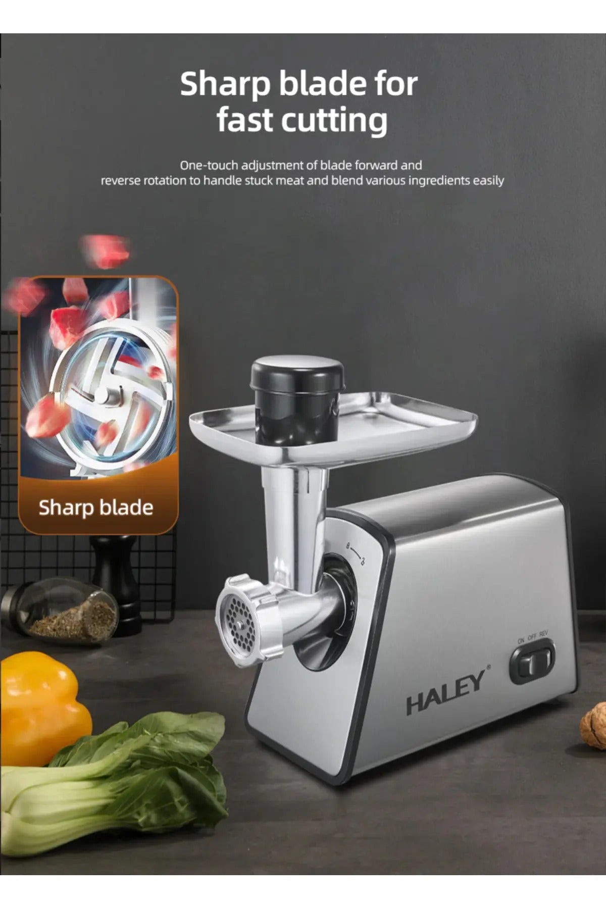 🔥 Putere profesionala pentru bucataria ta! 🔪🍖Masina de tocat carne HALEY 2600W este conceputa pentru performanta, durabilitate si eficienta maxime.; ⚡ Cu un motor puternic, un cutit cu cuplu ridicat si o carcasa robusta din otel inoxidabil, acest aparat este ideal pentru utilizare intensiva acasa si pentru prepararea celor mai gustoase retete traditionale.; ✨ Avantaje cheie:✅ Motor real de 2600 W - toaca rapid chiar si cele mai dure bucati de carne✅ Lama cu cuplu mare - performanta constanta, fara blocaje✅ Functionare silentioasa 🤫 - motor silentios, confort sporit✅ Sistem inteligent de racire 🌬️ - protectie termica, durata de viata extinsa✅ Design usor de curatat 🧽 - componente detasabile, intretinere usoara✅ Jgheab de alimentare mare 🍖 - eficienta sporita, fara pre-taiere🍔 Ideal pentru:🥩 Carne tocata proaspata acasa🌭 Carnati, chiftele, burgeri, kebaburi, tocanite👨"�👩"�👧"�👦 Gatit frecvent in familie si retete traditionale✅ Gospodarii care doresc control total asupra calitatii carnii💪 HALEY - Eficienta, putere si simplitate intr-un singur dispozitiv.; ⚡ Toaca rapid, functioneaza curat si eficient.; 📦 Comanda acum si bucura-te de livrare rapida
