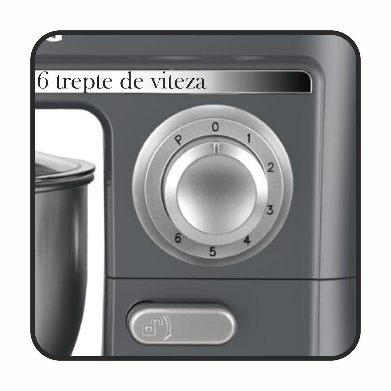 ??? 6 trepte de viteza pentru control total, de la mixarea usoara la framantarea aluaturilor dense.