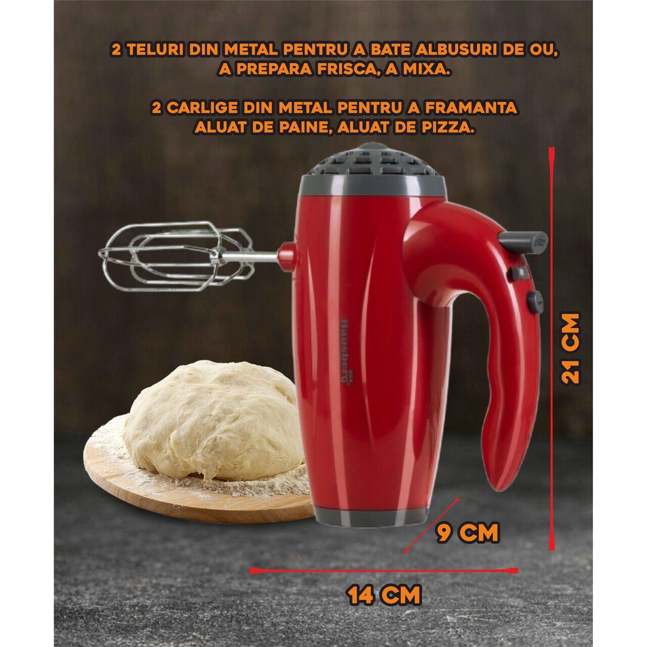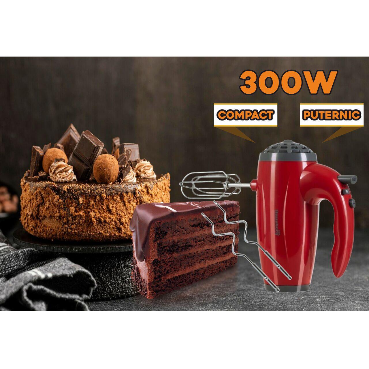 Mixer de mana Hausberg HB-4119RS, 5 viteze, putere 300W, motor de cupru, Rosu