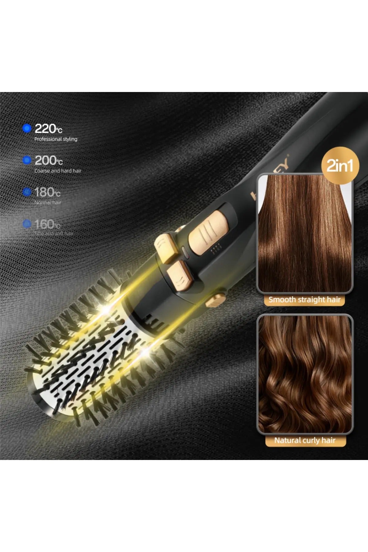 Perie rotativa HALEY 6 in 1 cu uscator, 1200W - Coafare rapida, volum de salon, fara deteriorarea parului Transformati-va rutina de coafura cu uscatorul de par HALEY 6 in 1 - un aparat versatil care usuca, da volum, indreapta si coafeaza parul in doar cateva minute.; Cu o putere de 1200W, incalzire rapida si capete interschimbabile, puteti obtine un look profesional chiar acasa, fara a va deteriora parul.; Caracteristici cheie: ✅ Putere de 1200W - Incalzire rapida si coafare eficienta Gata de utilizare in cateva secunde! Obtineti coafuri impecabile fara a pierde timp pretios.; ✅ 6 in 1 - Capete multiple pentru stiluri diverse Include: Conector universal Perie de suflat Perie rotunda standard (perie rotunda) Perie rotunda metalica Perie rotunda mare Indiferent daca doriti bucle lejere, volum la radacini sau par perfect drept, aveti tot ce aveti nevoie intr-un singur dispozitiv.; ✅ 3 setari de viteza/temperatura Controlati caldura si viteza in functie de tipul de par - ideal pentru toate texturile, de la fin la gros.; ✅ Tehnologie de protectie a parului (Nu deterioreaza parul) Designul inteligent protejeaza structura parului, oferind coafuri de lunga durata, fara degradare termica.; ✅ Modelare de lunga durata Coafura ta ramane fixata mai mult timp, fara produse agresive sau exces de fixativ.; ✅ Design elegant negru - Usor si ergonomic Un aspect profesional, manevrare usoara si confort in utilizare, chiar si pentru sesiuni de coafare mai lungi.; HALEY - Stilul tau, puterea ta, fara compromisuri Cu peria rotativa HALEY 6 in 1 obtii rezultate de salon in fiecare zi, economisind timp si protejand sanatatea parului tau.