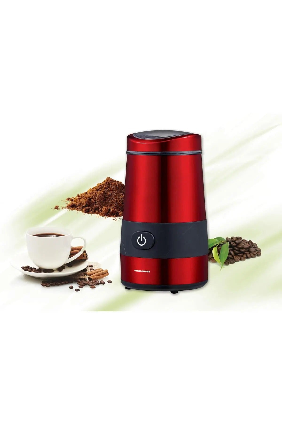 Rasnita electrica HEINNER HCG-200RED, putere: 200W, capacitate: 60g, lame din inox, carcasa din inox, sistem de siguranta, spatiu depozitare cablu de alimentare, culoare: rosu