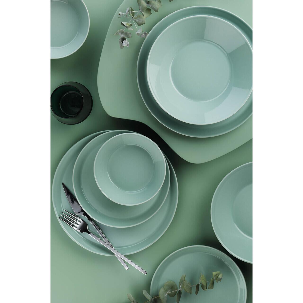 Transformă fiecare masă într-o experiență elegantă cu serviciul de masă FORZA de la Kutahya Porselen. Cu un design contemporan și o nuanță rafinată de verde pastel, acest set este ideal pentru 6 persoane, fiind perfect atât pentru utilizarea zilnică, cât și pentru mesele festive.